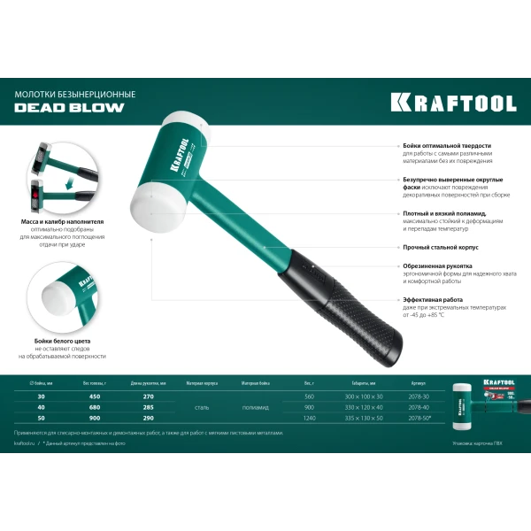 KRAFTOOL Dead Blow, 30 мм, 450 г, безынерционный молоток (2078-40)