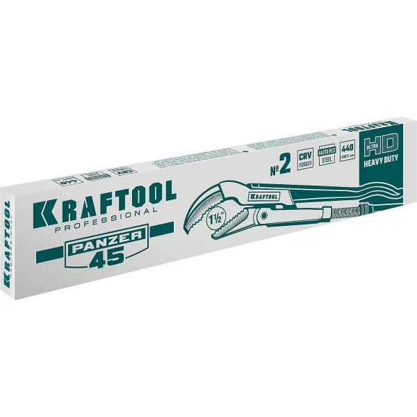 KRAFTOOL PANZER-4, №2, 1.5″, 440 мм, трубный ключ с изогнутыми губками (2735-15)
