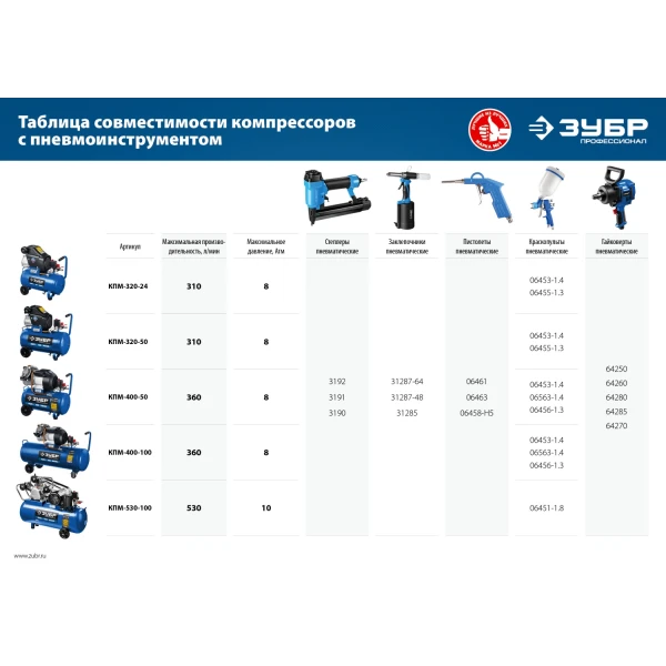 ЗУБР 530 л/мин, 100 л, 3000 Вт, ременной масляный компрессор, Профессионал (КПМ-530-100)