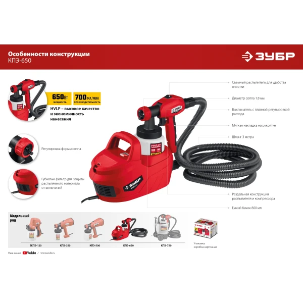 ЗУБР 650 Вт, краскопульт электрический, воздушный (КПЭ-650)