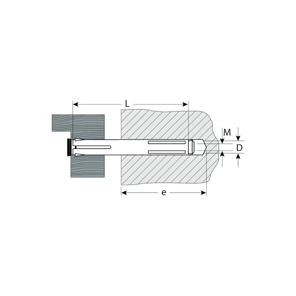 Для крепления оконных рам и дверных коробок к полнотелым основаниям: поверхностям из бетона, полнотелого кирпича или природного камня. Анкер устанавливается в предварительно просверленное и очищенное от буровой муки отверстие диаметром 10мм, расклинивание происходит при закручивании винта. Минимальная глубина сверления (е) - 50мм. Для установки анкера требуется бита PZ3.
