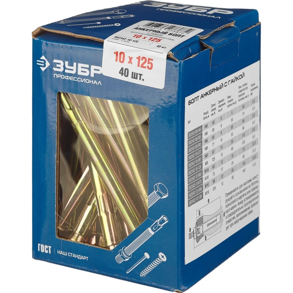 ЗУБР М10 х 125 мм, 40 шт, анкерный болт с гайкой, Профессионал (302342-10-125)