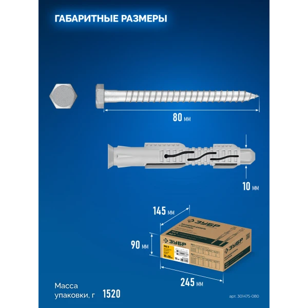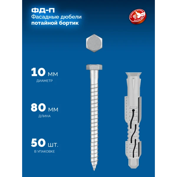 ЗУБР ФД-П 10 x 80 мм, фасадный дюбель, нейлон/цинк, 50 шт (301475-080)