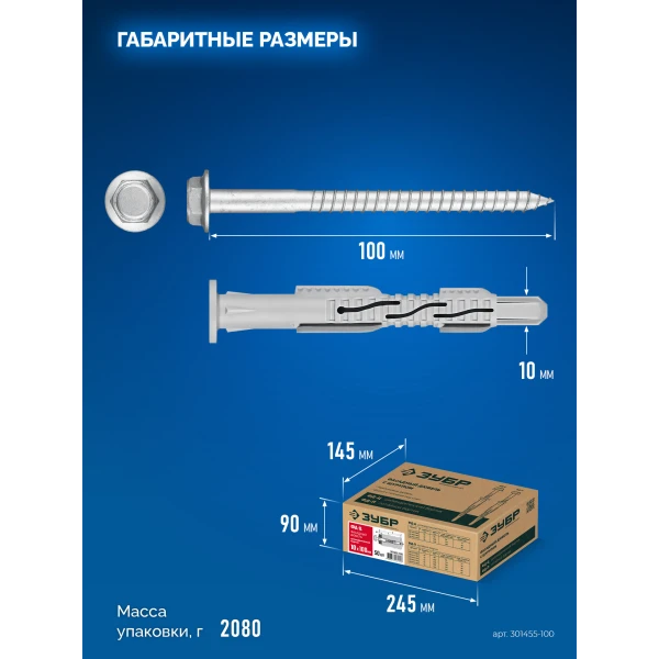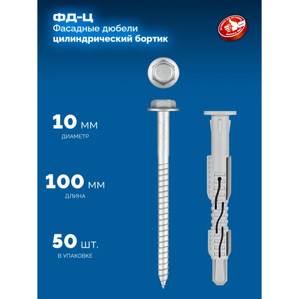ЗУБР ФД-Ц 10x 100 мм, фасадный дюбель, нейлон/цинк, 50 шт (301455-100)