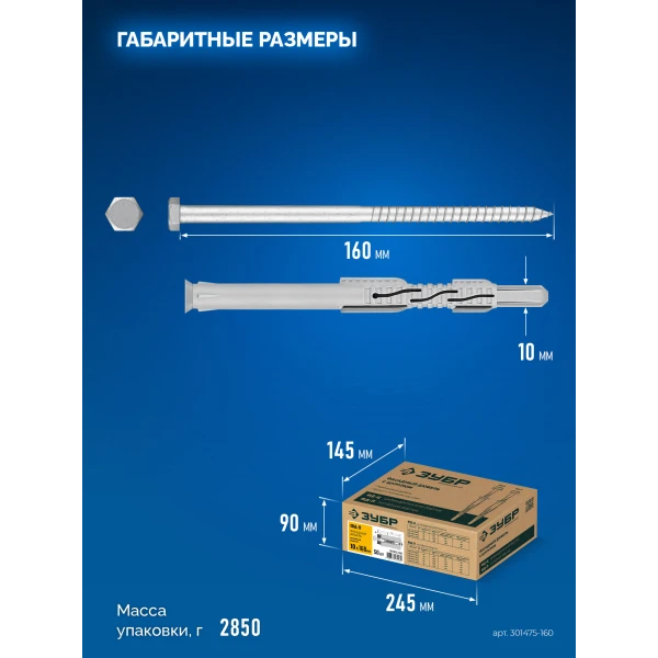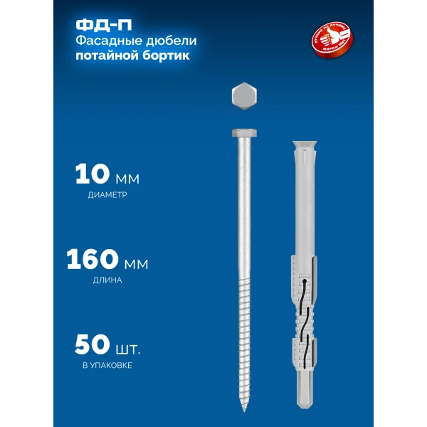 ЗУБР ФД-П 10 x 160 мм, фасадный дюбель, нейлон/цинк, 50 шт (301475-160)