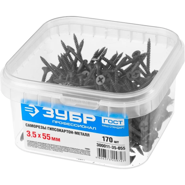 ЗУБР СГМ, 55 х 3.5 мм, фосфатированное покрытие, 170 шт, саморез гипсокартон-металл, Профессионал (300011-35-055)