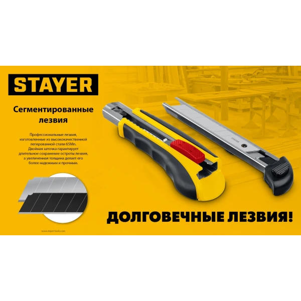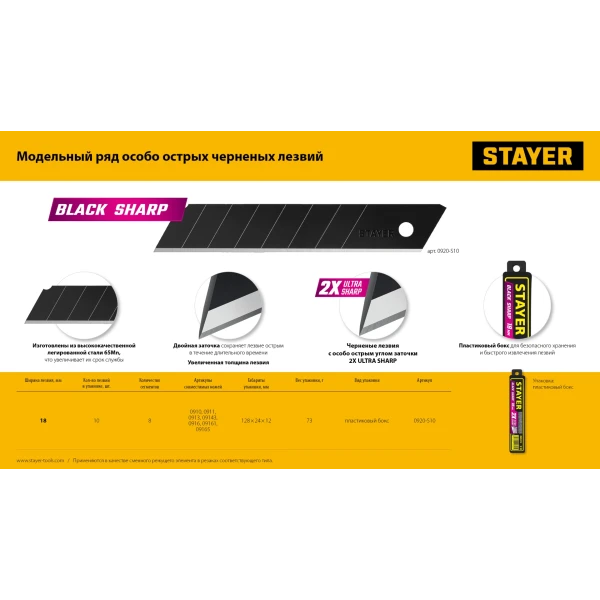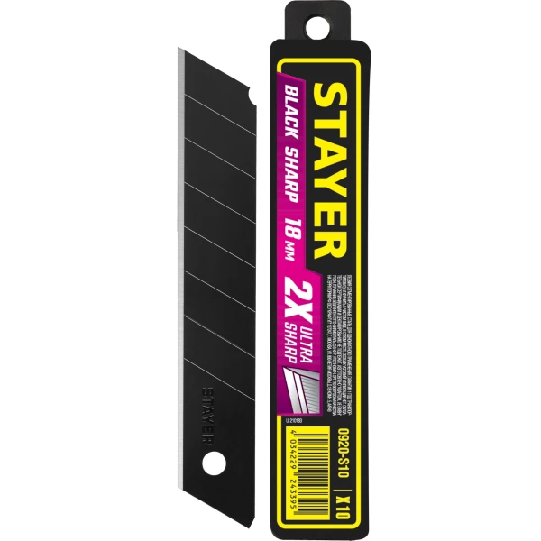 STAYER 18 мм, 10 шт, сегментированные черные особоострые лезвия (0920-S10)