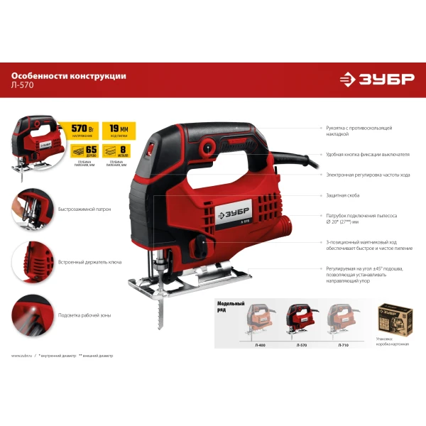 ЗУБР 570 Вт, 65 мм, электрический лобзик (Л-570)