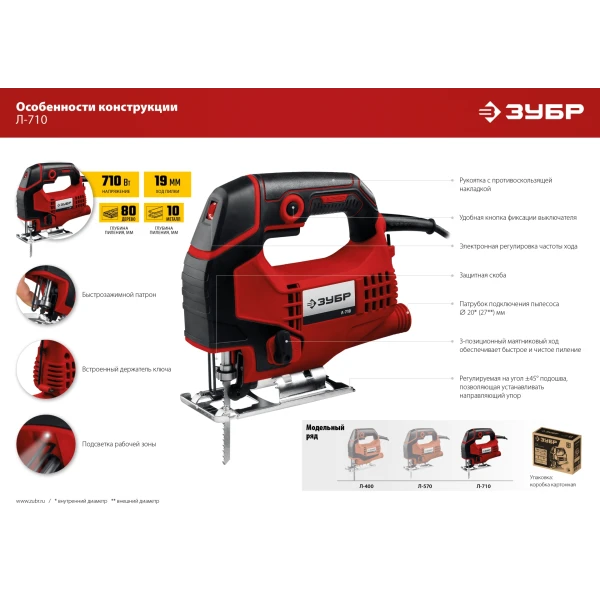 ЗУБР 710 Вт, 80 мм, электрический лобзик (Л-710)