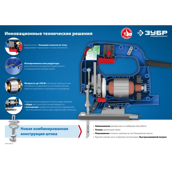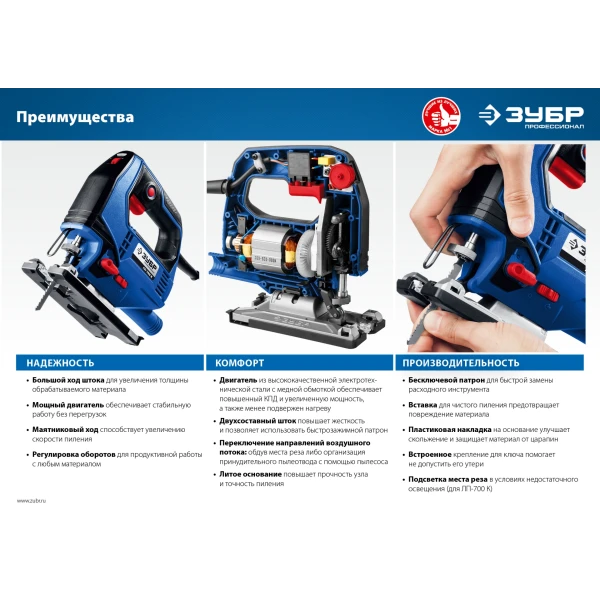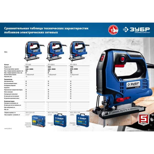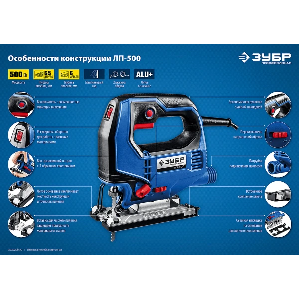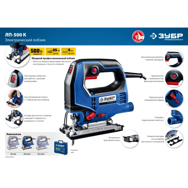 ЗУБР 500 Вт, 65 мм, электрический лобзик, кейс, Профессионал (ЛП-500 К)