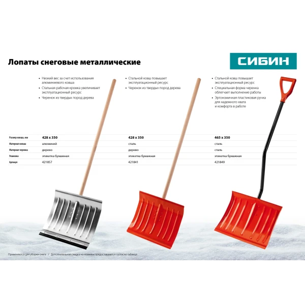 Снеговые лопаты СИБИН - оптимальное решение для уборки снега. Надежная конструкция и отличные эксплуатационные характеристики делают их незаменимыми в зимний период.