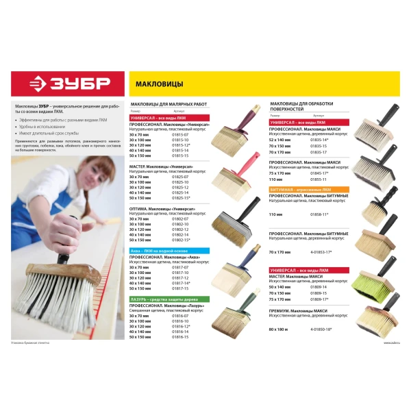 ЗУБР 50 х 130 мм, искусственная щетина, деревянный корпус, все виды ЛКМ, макловица (01809-14)