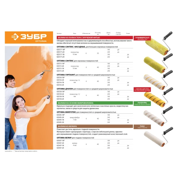 Валики ″ЗУБР″ ОПТИМА - оптимальное решение для любых покрасочных работ