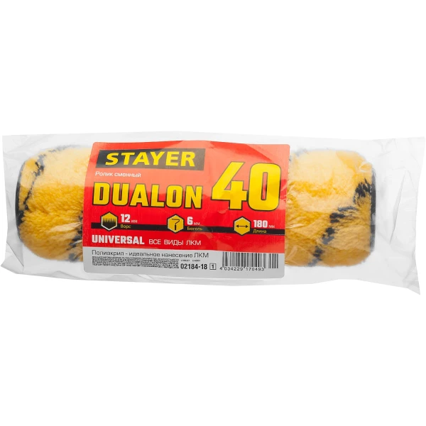 STAYER DUALON, 40 х 180 мм, бюгель 6 мм, ворс 12 мм, полиакрил, все виды ЛКМ, малярный ролик (02182-18)