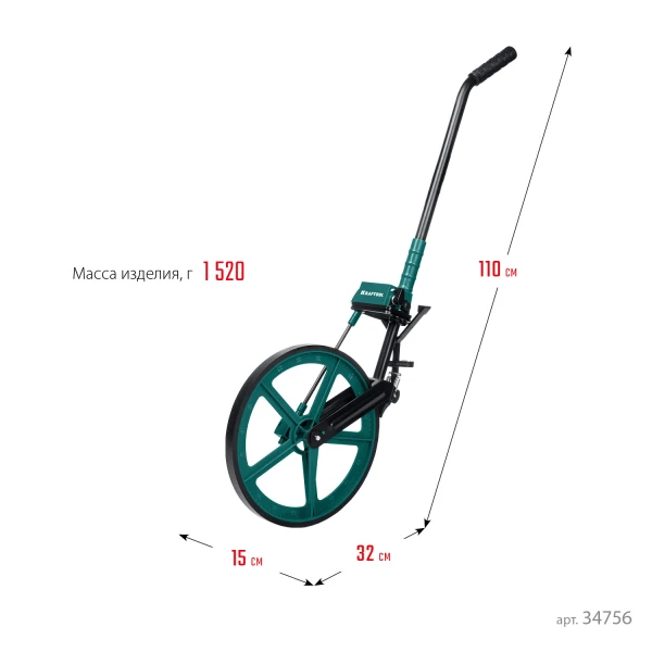 KRAFTOOL 0.1 - 99999.9 м, измерительное колесо (курвиметр) с металлическим шасси и рукояткой (34756)