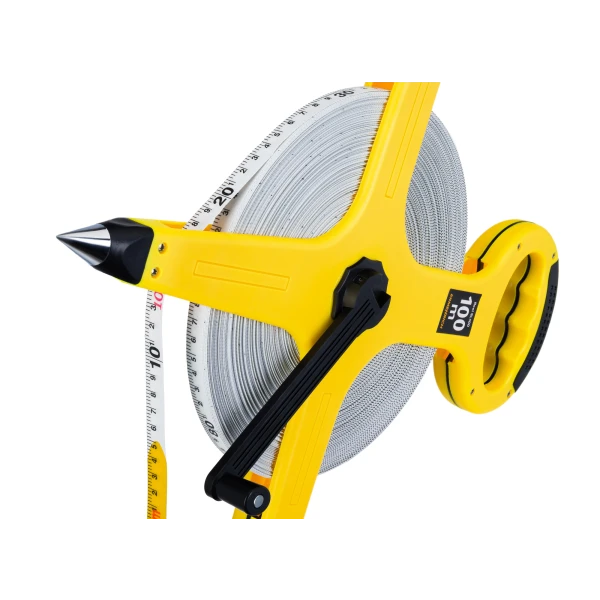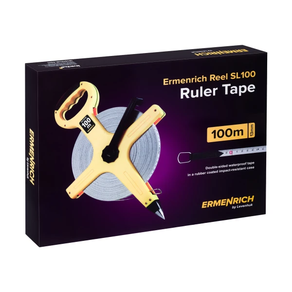 Ermenrich Reel SL100 – рулетка, которая позволяет проводить измерения длины в пределах 100 метров. Она создана специально для землемерных работ – картографических, топографических и проч., но также найдет свое применение в строительстве. Конструкцией предусмотрены заостренный наконечник, с помощью которого рулетку можно зафиксировать в почве, и рукоятка, используемая для удержания во время работы.