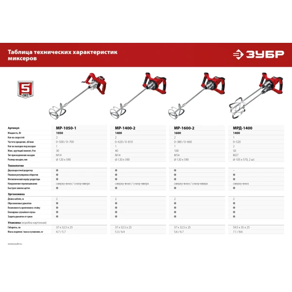 ЗУБР М27, 1400 Вт, строительный двойной миксер (МРД-1400)