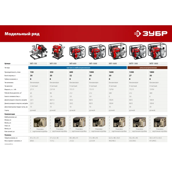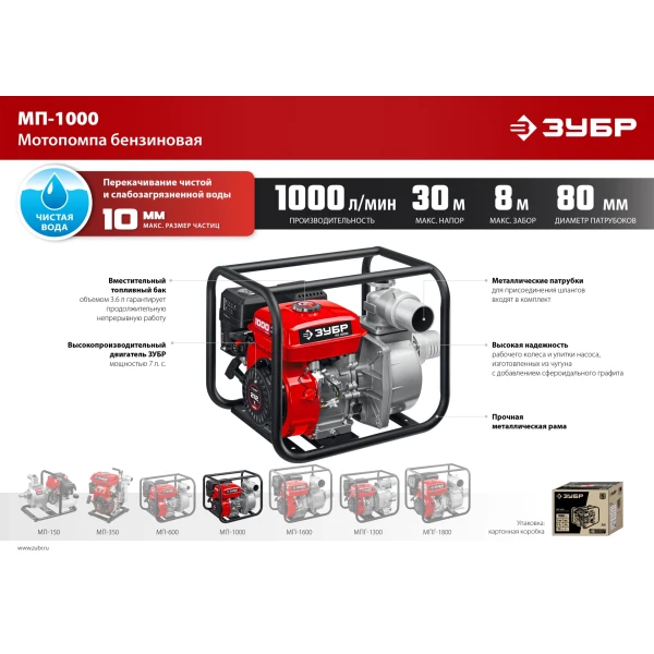 ЗУБР 1000 л/мин, мотопомпа бензиновая (МП-1000)