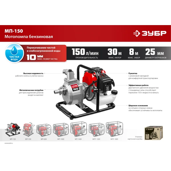 ЗУБР 150 л/мин, мотопомпа бензиновая (МП-150)