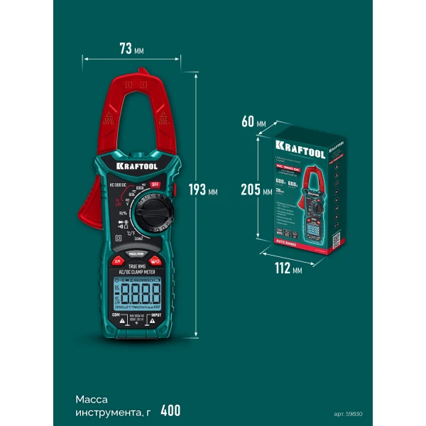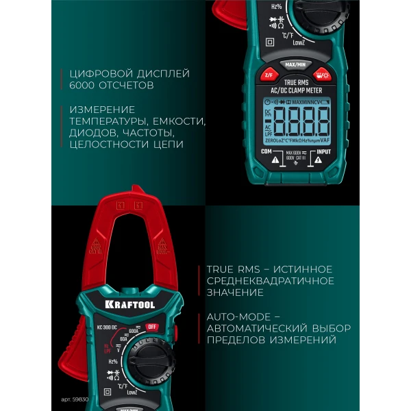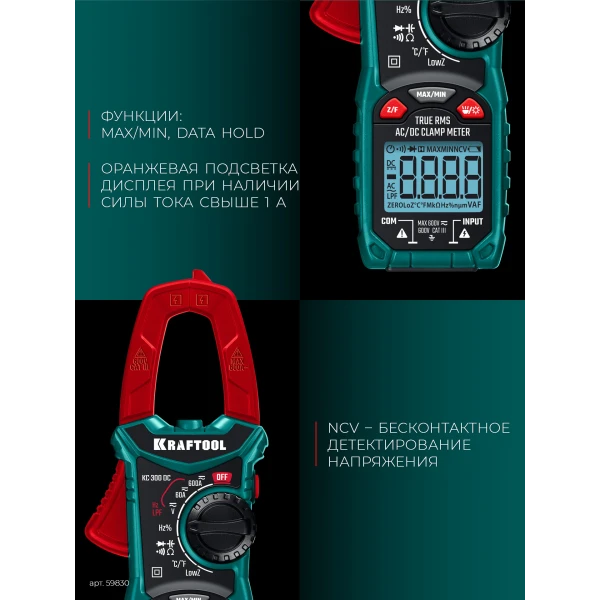 KRAFTOOL KC-300DC Цифровые токовые клещи (59830)