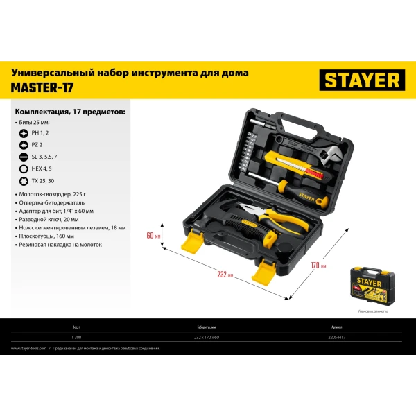 STAYER Master-17, 17 предм., универсальный набор инструмента для дома (2205-H17)
