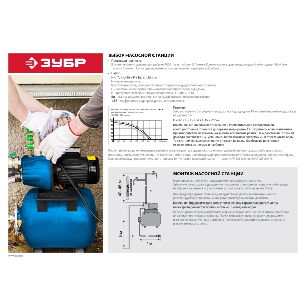 ЗУБР 1200 Вт, бак 50 л, автоматическая насосная станция (НАС-М3-1200-50)