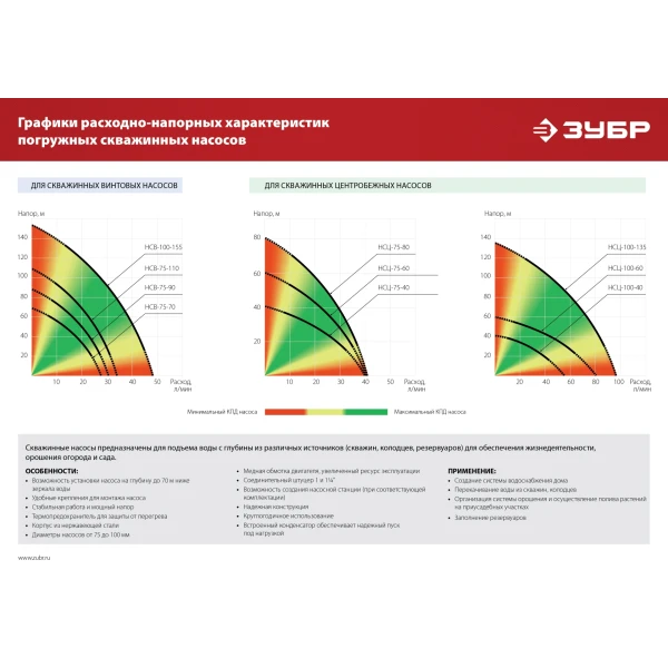 ЗУБР 1000 Вт, 80 м напор, скважинный центробежный насос, корпус из нержавеющей стали (НСЦ-75-80)