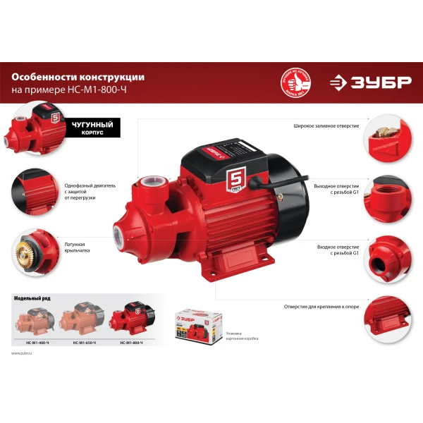 ЗУБР 650 Вт , поверхностный вихревой насос, корпус из чугуна (НС-М1-650-Ч)