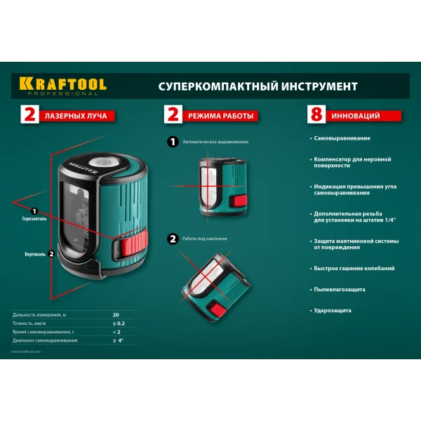 - Функция самовыравнивания устраняет необходимость настройки, гарантирует максимальную точность при разметке.