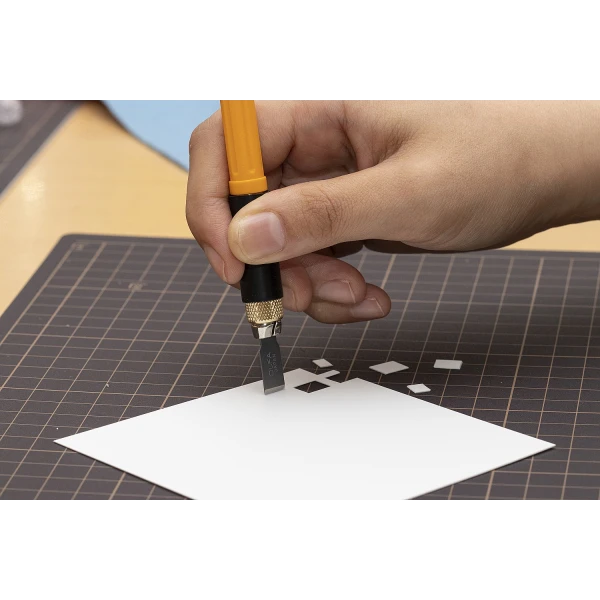 - Благодаря широкому выбору лезвий включённых в набор, данный нож может применяться при работе с самыми различными материалами