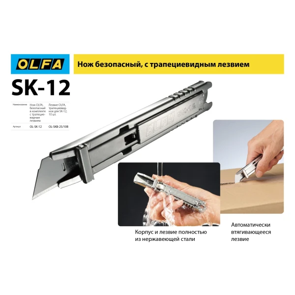 OLFA металлический корпус, безопасный нож с трапециевидным лезвием (OL-SK-12)