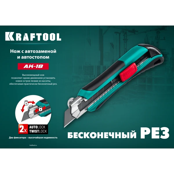 Мощный нож KRAFTOOL с автозаменой лезвий