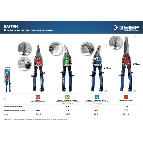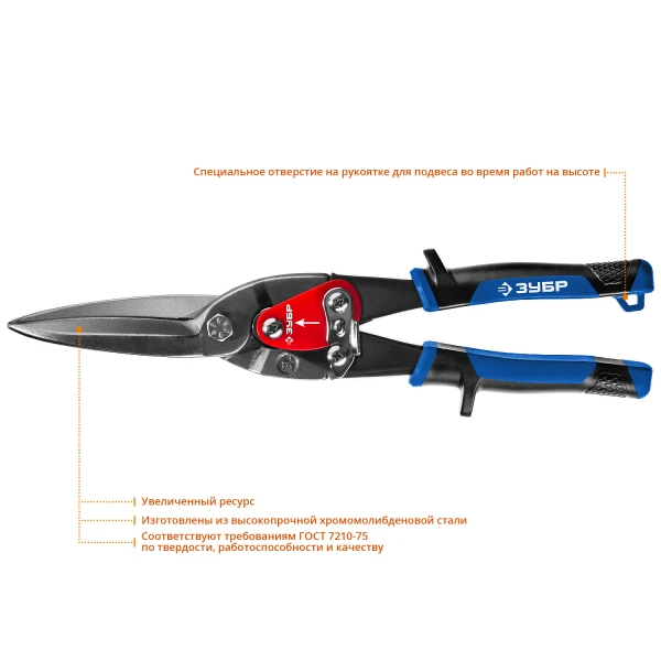 ЗУБР 300 мм, прямые удлинённые ножницы по металлу, Профессионал (23130-SL)