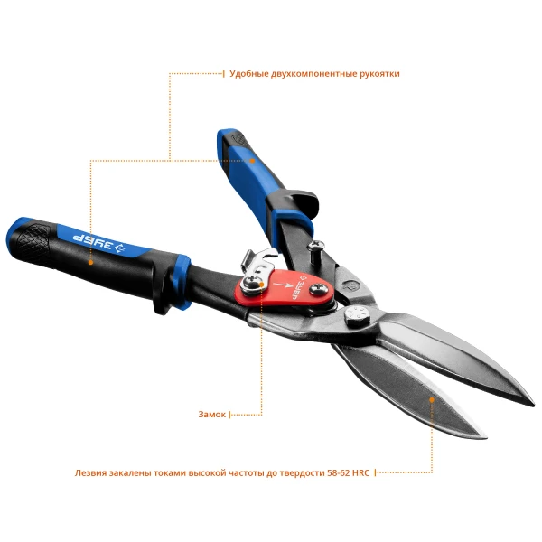 - Лезвия ножниц закалены токами высокой частоты до твёрдости 58 - 62 HRC