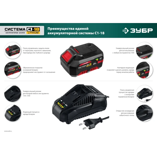 - Единая аккумуляторная система С1-18В для множества инструментов