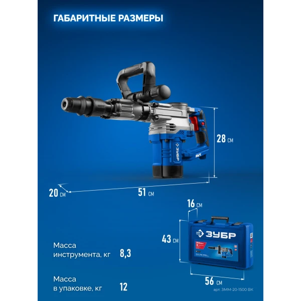 Отбойный молоток ЗУБР 20 Дж 1500 Вт SDS-Max