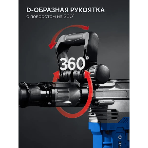 - Регулируемая на 360° и по углу наклона дополнительная D-образная рукоятка обеспечивает удобный и надежный хват в любом положении изделия