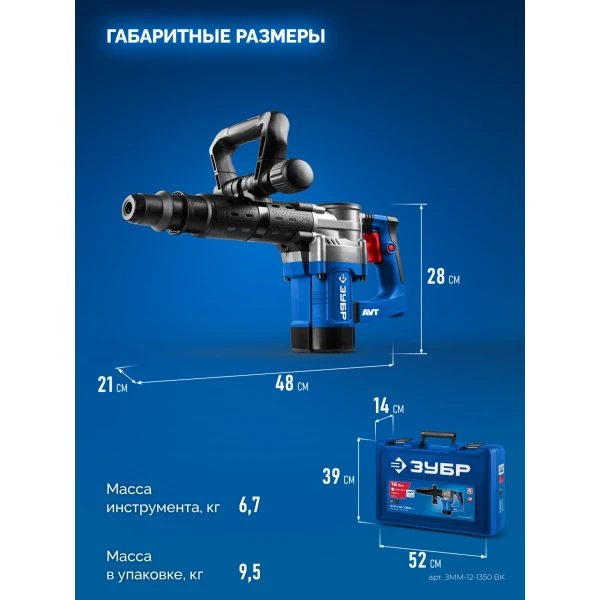 ЗУБР 12 Дж, 1350 Вт, АВТ, отбойный молоток SDS-Max, Профессионал (ЗММ-12-1350 ВК)