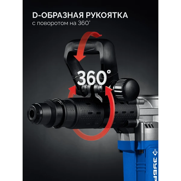 - Регулируемая на 360° и по углу наклона дополнительная D-образная рукоятка обеспечивает удобный и надежный хват в любом положении изделия