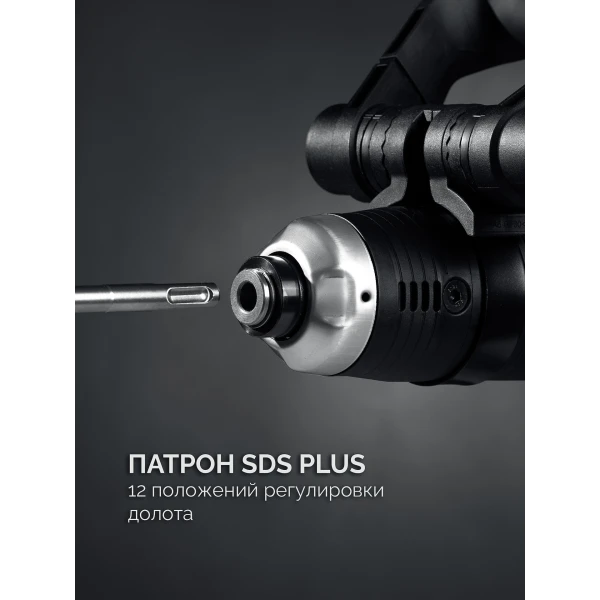 - Патрон SDS-Plus для установки широкого спектра профессионального расходного инструмента и быстрой замены в процессе работы