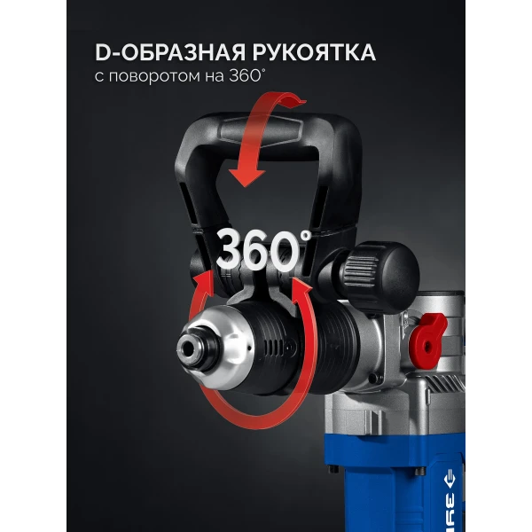 - Регулируемая на 360° и по углу наклона дополнительная D-образная рукоятка обеспечивает удобный и надежный хват в любом положении изделия