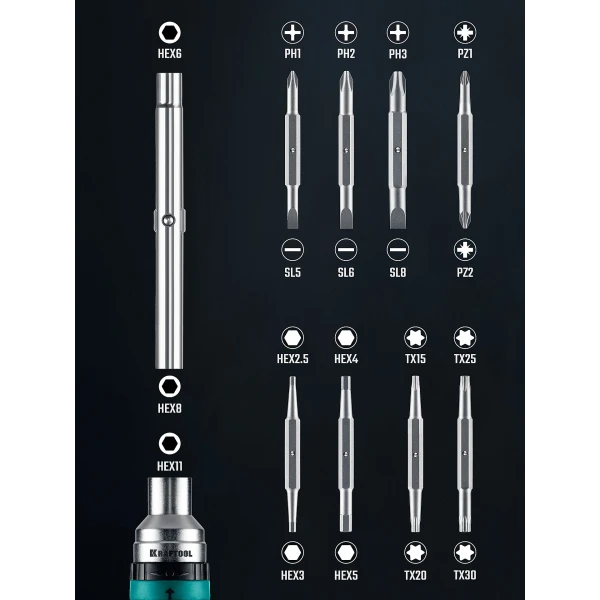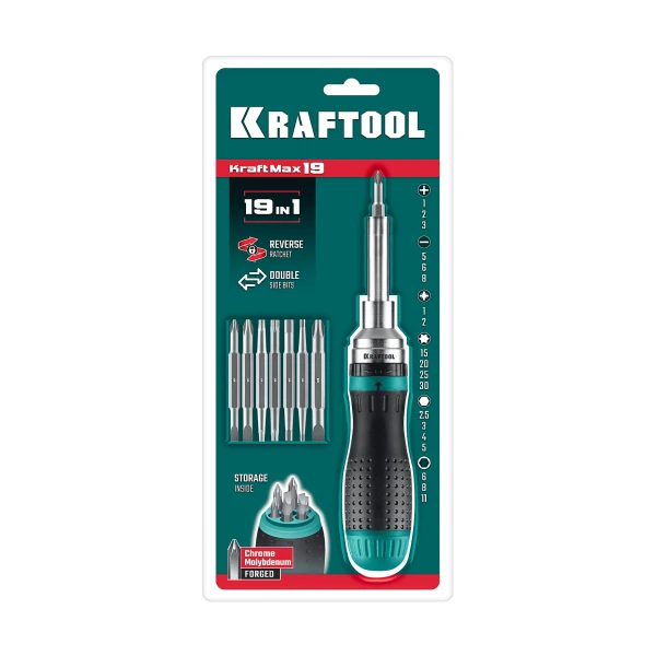 KRAFTOOL 19-в-1 KraftMax 19, Реверсивная отвертка с битами (25862)