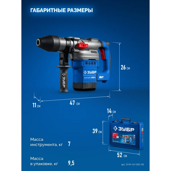 ЗУБР 40 мм, 1300 Вт, АВТ, перфоратор SDS-Max, Профессионал (ЗПМ-40-1300 ЭВ)