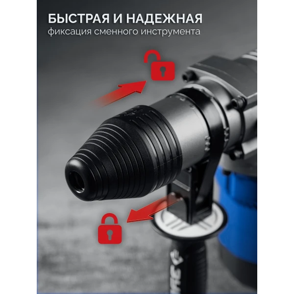 - Патрон SDS Max для установки широкого спектра профессионального расходного инструмента и быстрой замены в процессе работы