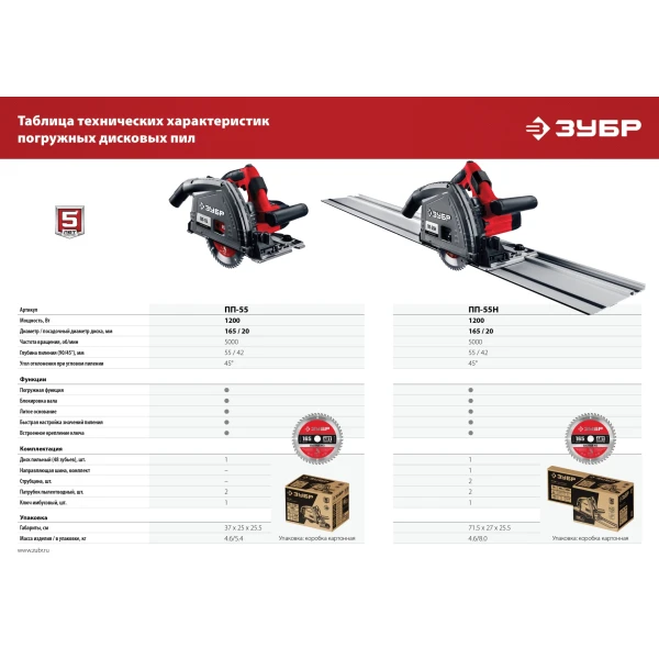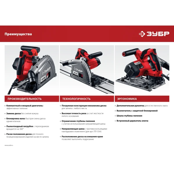 Погружная пила Зубр ПП-55 165 мм 1200 Вт