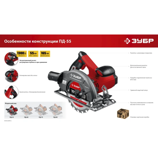 Циркулярная пила Зубр ПД-55 165 мм 1300 Вт