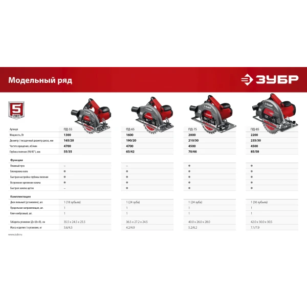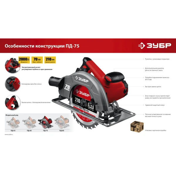 Циркулярная пила Зубр ПД-75 210 мм 2000 Вт