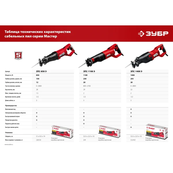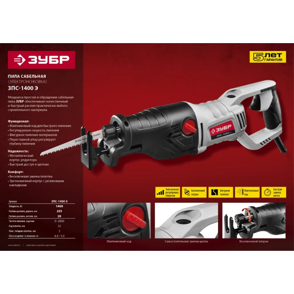 ЗУБР 1400 Вт, сабельная пила (ЗПС-1400 Э)