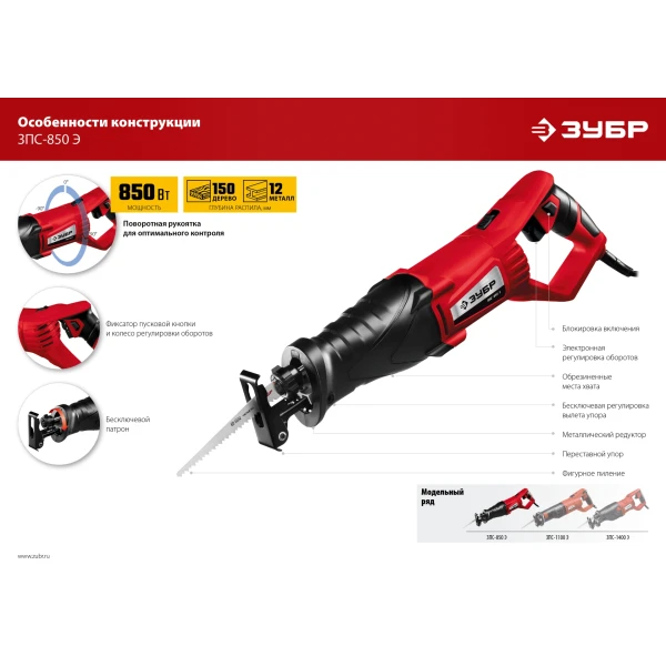 ЗУБР 850 Вт, сабельная пила (ЗПС-850 Э)