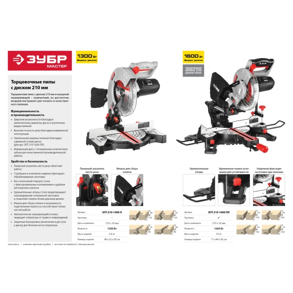 Торцовочная пила Зубр ЗПТ-210-1400 Л 210 мм 1300 Вт